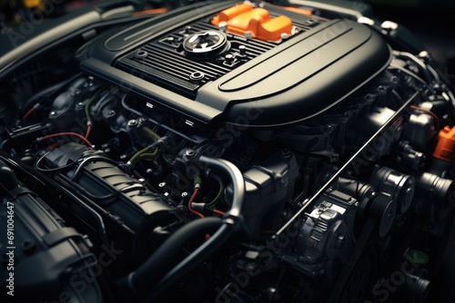 © visoot, Fototapeta premium Top view of engine in car. Generative AI.