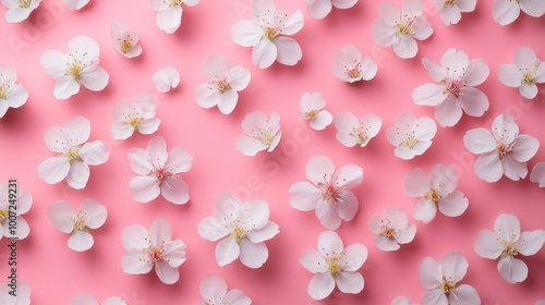 Fototapeta premium Top View of Flower Blossom Pattern on Pink Background - Vibrant Floral Design with Delicate Petals and Soft Pastel Colors for Modern and Elegant Visuals
