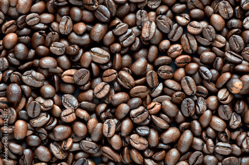 © roobcio, Fototapeta premium top view of fresh roasted coffee beans background