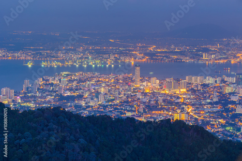 Naklejka premium Top view of Georgetown, capital of Penang Island, Malaysia from top of Penang...
