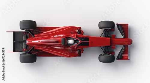 Naklejka premium Top view of glossy red Formula One race car model with visible driver in...
