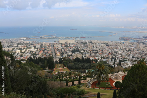 © subbot, Obraz premium top view of Haifa Bahai gardens Israel