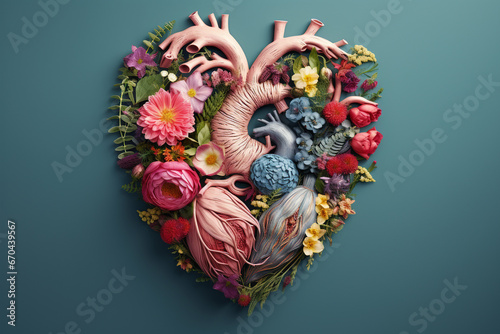 © madyshah783, Naklejka premium Top view of heart shape made of blooming flowers