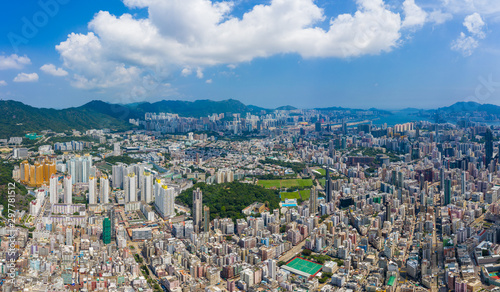 © leungchopan, Fototapeta premium Top view of Hong Kong city