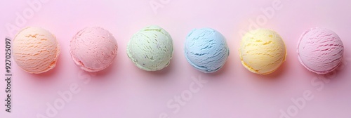 © MEHDI, Fototapeta premium top view of ice cream of different colors on pastel background.