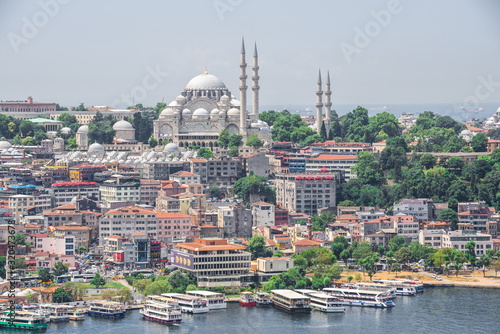 © multipedia, Naklejka premium Top view of Istanbul city and Dock For Bosphorus Trips in Turkey