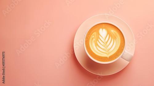 © best stock, Obraz premium Top view of Latte in mugs with latte art, pink background