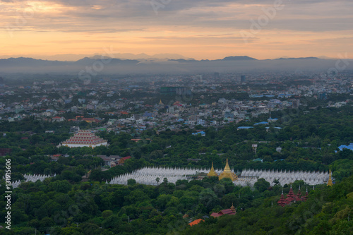 Naklejka premium Top view of Mandalay city from Mandalay hill, Myanmar