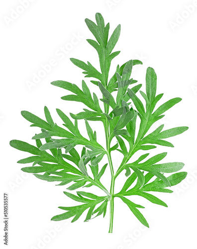 © domnitsky, Fototapeta premium Top view of medicinal wormwood isolated on a white background. Fresh sagebrush sprig.