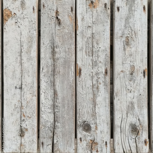 Naklejka premium Top view of old rustic wooden planks with weathered texture, cracks, grain detail, faded paint remnants, vintage countryside feel, aged and realistic look, high detail
