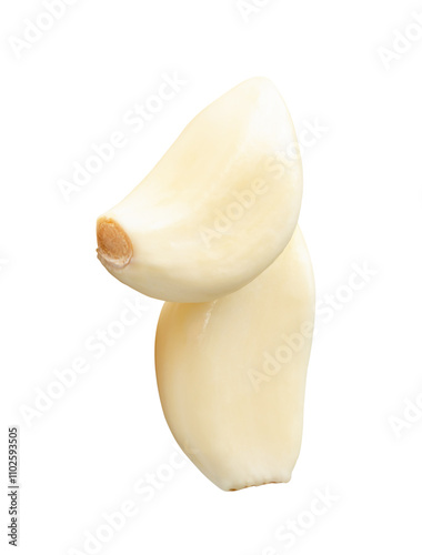 © nathamag11, Fototapeta premium Top view of peeled garlic cloves in stack isolated on white background with clipping path