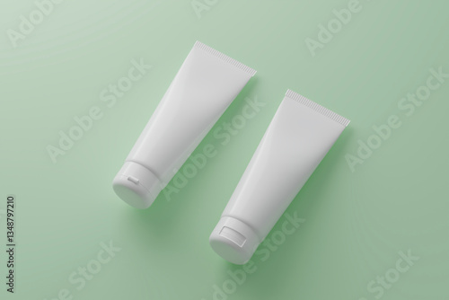 © G_stockerthailand, Fototapeta premium top view of plastic tube container on green background.
