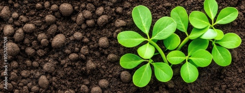 Naklejka premium Top view of rich soil with seedlings emerging, symbolizing growth and renewal...