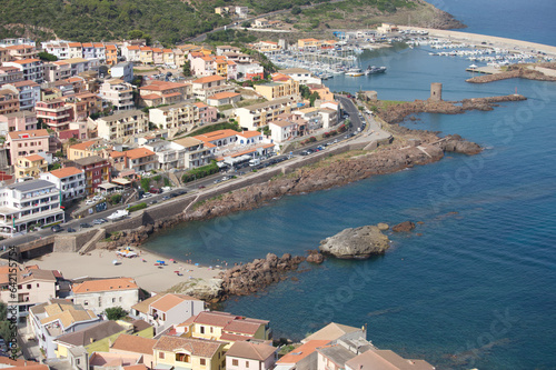 © Franz Sidney Art, Obraz premium Top view of Sardinian coast with city and harbour