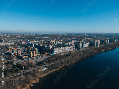 Obraz premium Top view of the left bank. Solnechny district, Dnipro, Ukraine. Residential...