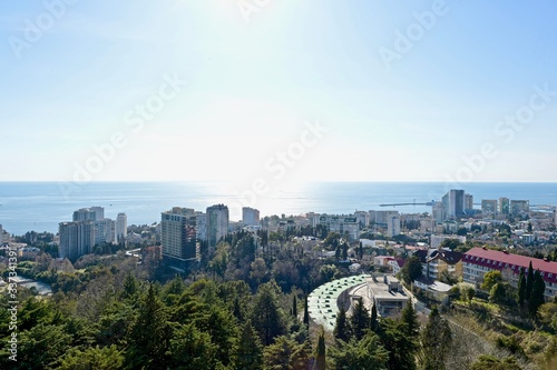 © Aleda, Fototapeta premium top view of the panorama of the southern mountain city