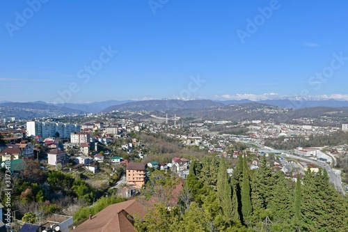 © Aleda, Fototapeta premium top view of the panorama of the southern mountain city