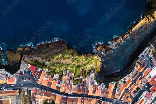 © De Visu, Obraz premium Top view of the Ponta Delgada coast, San Miguel island, Azores, Portugal.