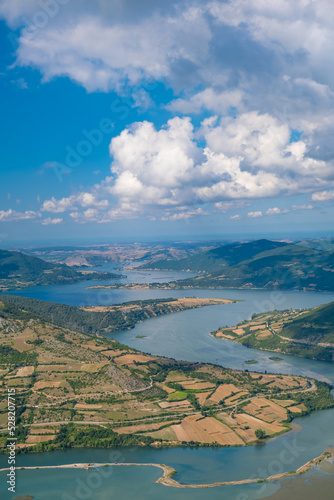 © Ensar, Fototapeta premium top view of the river and mountains, meadows, surrounded by the kizilirmak river.