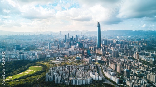 Obraz premium Top view of the sprawling city of Shenzhen, with its modern skyline and urban...