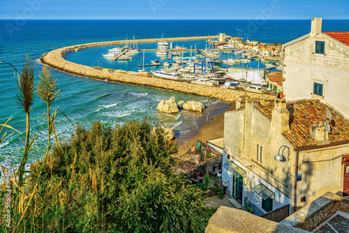 Naklejka premium Top view of the touristic port of Rodi Garganico and the beach. Rodi...