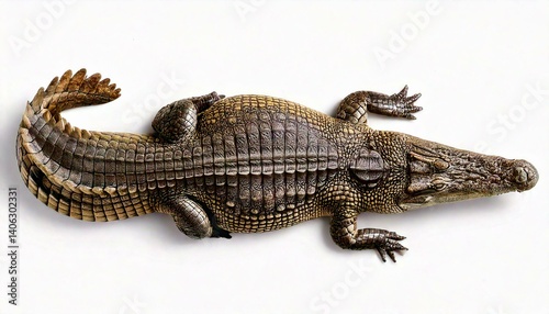 © MdRakibul, Naklejka premium Top view of the wildlife crocodile isolated on white background