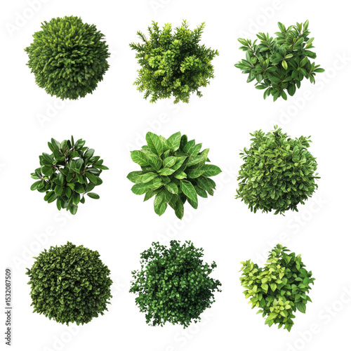 © Maira, Fototapeta premium Top view of various decorative green on isolated transparent cutout PNG Background