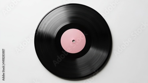 © Pixelzone, Fototapeta premium Top view of Vinyl record with bank label isolated.
