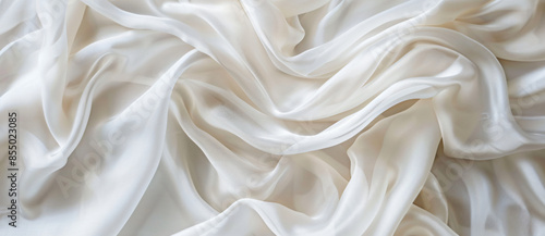 © Welle Photos, Obraz premium Top view of white silk fabric with folds on a light background