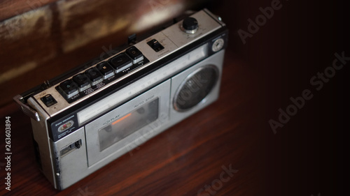 © nonneestudio, Fototapeta premium top view old radio on wooden background,copy space