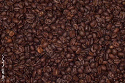 © kreus, Obraz premium Top view on medium roasted coffee beans.