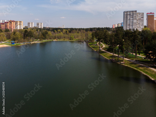 Naklejka premium Top view on school lake in Zelenograd administrative district of Moscow, Russia