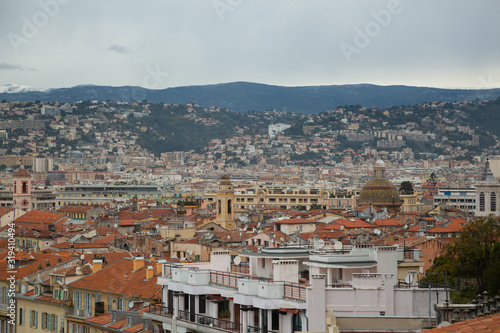 © dturphoto, Obraz premium Top view on the roofs of Nice. Ancient architecture in Europe, old town.
