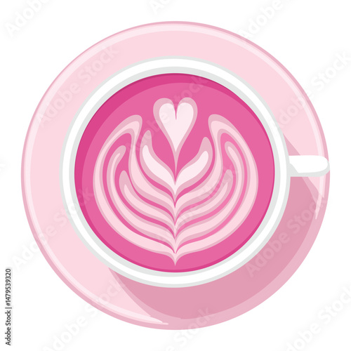 Fototapeta premium Top View Pink Latte with Heart Milk Art - Vector Illustration