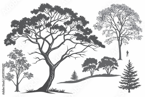 © MdFaruque, Obraz premium Top View Trees and Bushes – Landscape Architecture Elements Set