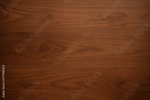 © Jelena, Fototapeta premium Top view warm walnut wood desk background with clean copy space and subtle grain