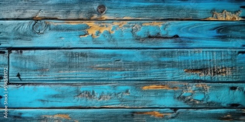 © CYBERUSS, Obraz premium Top view Wooden table, Wooden texture blue background. Generative AI