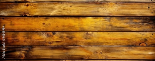 © CYBERUSS, Naklejka premium Top view Wooden table, Wooden texture yellow background. Generative AI
