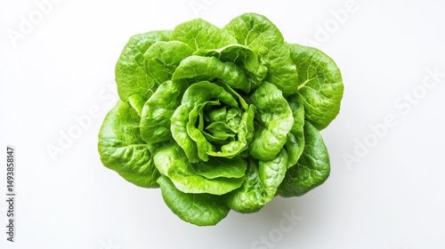 © nikomsolftwaer, Fototapeta premium Topdown view of fresh lettuce head isolated on white background food photography minimalistic setting aesthetic angle for culinary use