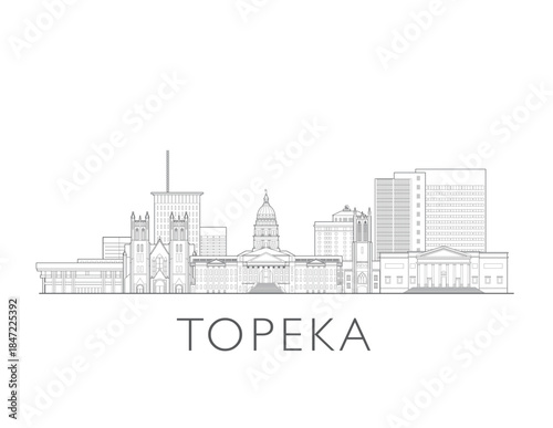 © NAK, Obraz premium Topeka Kansas cityscape illustration skyline drawing