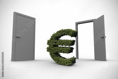 © vectorfusionart, Naklejka premium Topiary of euro sign in doorway