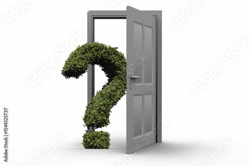 © vectorfusionart, Obraz premium Topiary of question mark at doorway