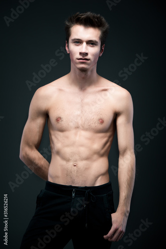 © YouraPechkin, Fototapeta premium Topless man posing standing and looking at camera