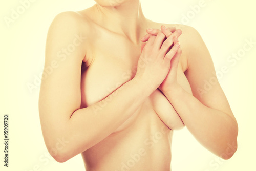 © Piotr Marcinski, Fototapeta premium Topless woman covers her breast.