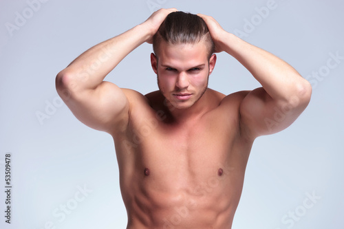 © Viorel Sima, Fototapeta premium topless young man with hands in hair