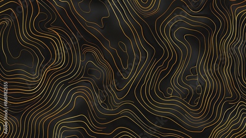 © Palung, Obraz premium Topographic line map pattern background vector illustration with dark black and gold colors, topographical lines.