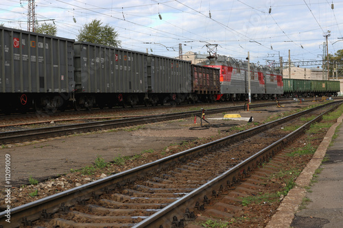 © alexkich, Fototapeta premium tor na stacji kolejowej