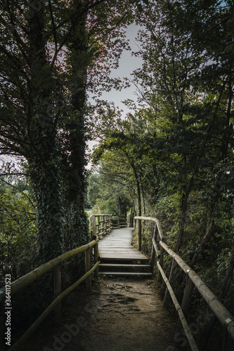 Fototapeta premium Torbiere del Sebino nature reserve. View of the "central path", wooden pier
