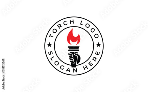 © rzfddesign, Obraz premium torch logo vector illustration badge design