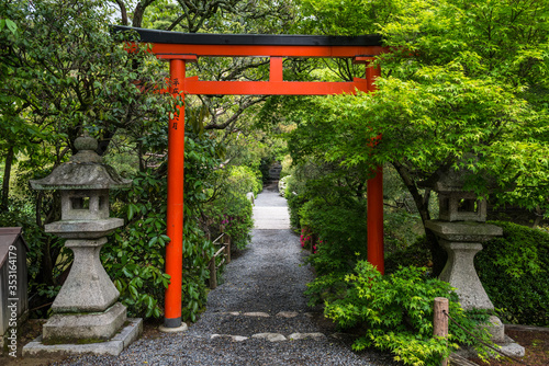 Obraz premium Torii Gate by Kyoyochi Pond, Ryoanji, Kyoto, Japan